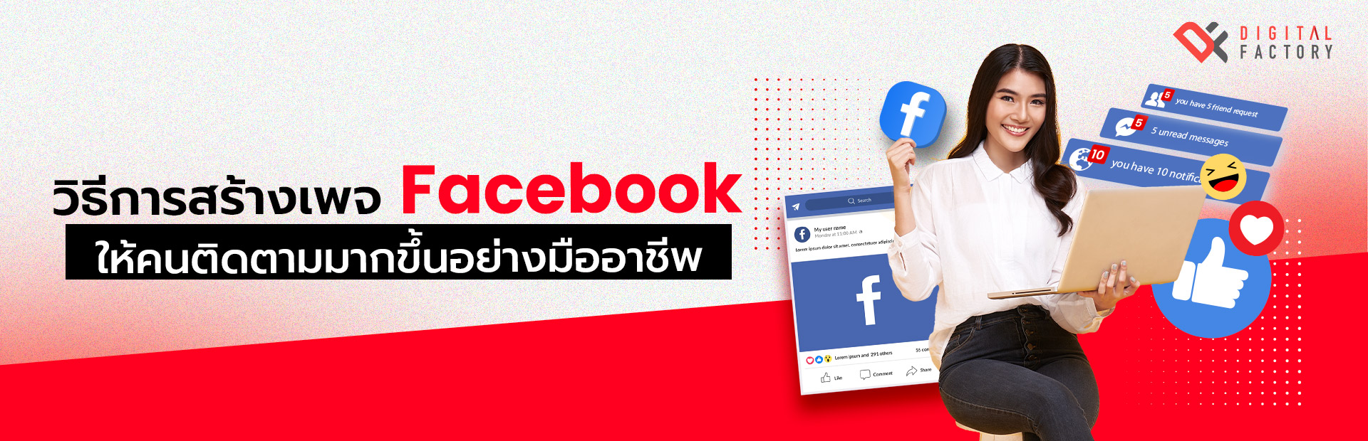 อยากมีรายได้จาก Facebook แต่ไม่รู้จะเริ่มยังไง ? บทความนี้ ดิจิทัล แฟคตอรี่ จะพาคุณไปเจาะลึกทุกขั้นตอน สร้างเพจ Facebook ให้ปัง! พร้อมเคล็ดลับสุดเจ๋งที่คนทำเพจต้องรู้ !