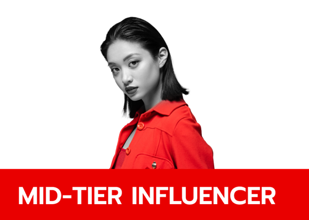 มิดเทียร์อินฟลูเอนเซอร์ (Mid-tier Influencer): มีผู้ติดตาม 50,000 - 250,000 คน มีอิทธิพลต่อผู้ติดตามในวงกว้าง เหมาะกับการทำการตลาดแบบ mass reach