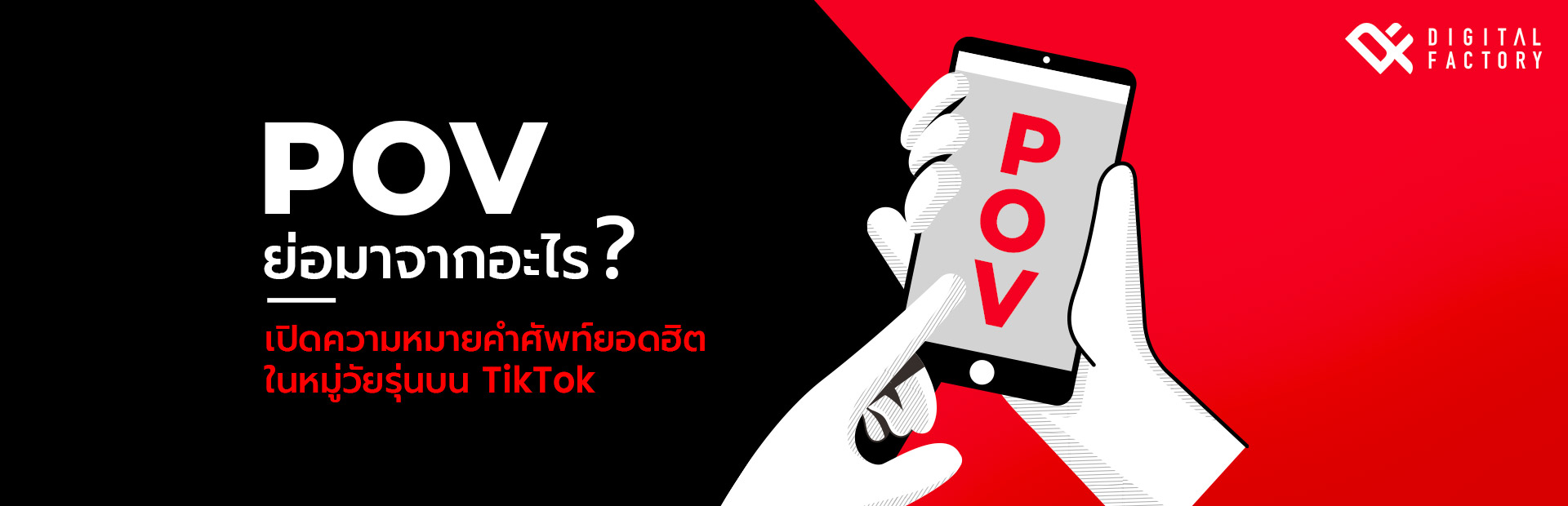 ‘POV ย่อมาจาก Point of View’ ซึ่ง POV แปลว่า มุมมอง หรือ จุดยืน คำศัพท์นี้ถูกนำมาใช้กันอย่างแพร่หลายในหลากหลายวงการ ไม่ว่าจะเป็นวรรณกรรม ภาพยนตร์ และปัจจุบันก็กลายเป็นคำที่ได้รับความนิยมอย่างมากในโลกโซเชียลมีเดีย โดยเฉพาะบนแพลตฟอร์มอย่าง TikTok
